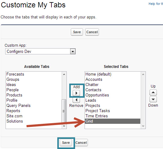Select Grid from the Available Tabs list and add it to Selected Tabs